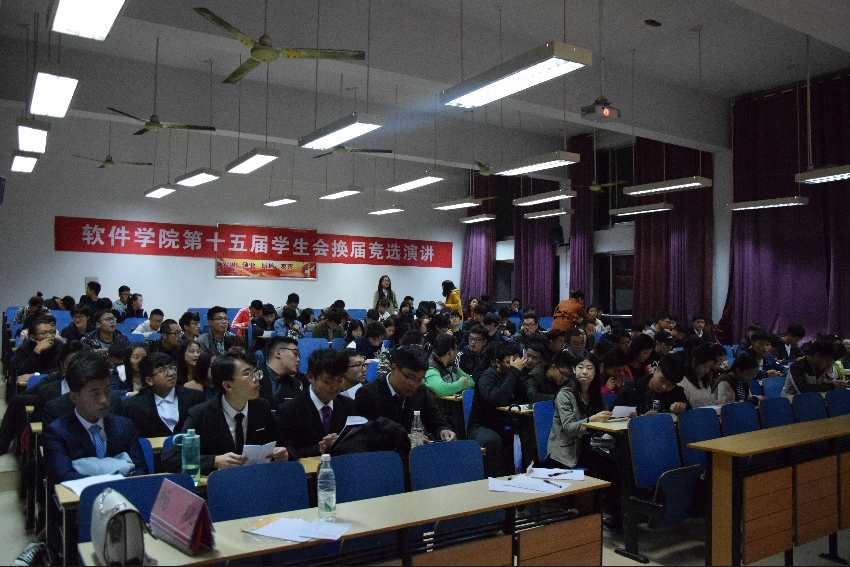 本网讯(学生记者/张磊) 10月16日,软件学院第十五届学生会换届竞选演讲大会于14教302成功举办。软件学院党委副书记祝孔涛及全体辅导员出席本次大会。